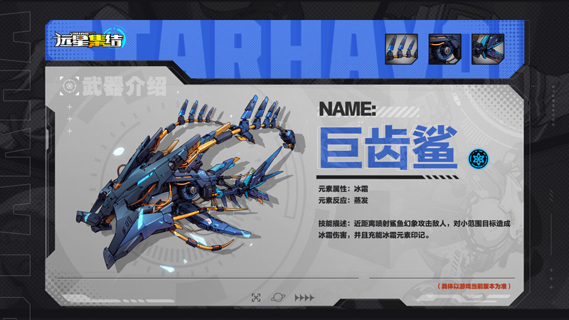 「巨齿鲨」:近距离喷射鲨鱼幻象攻击敌人,对小范围目标造成冰霜伤害,并且充能冰霜元素印记。