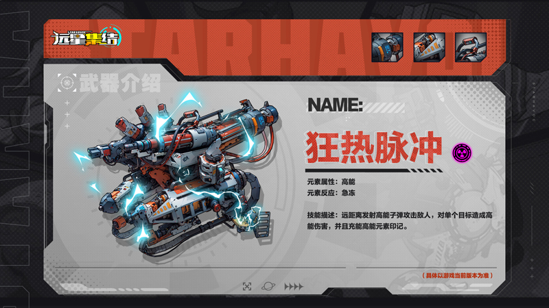 「狂热脉冲」:远距离发射高能子弹攻击敌人,对单个目标造成高能伤害,并且充能高能元素印记。